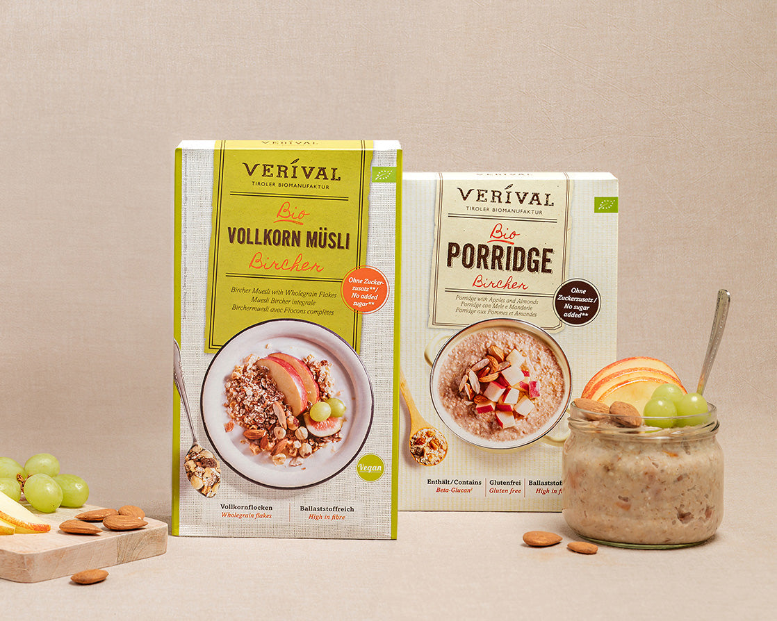 Bircher Muesli reinterpreted - Organic wholemeal Bircher Muesli and Bircher Porridge from Verival