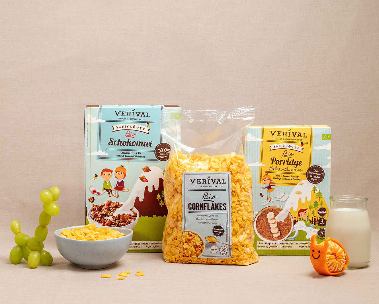 Verival porridge for children, muesli for children or cornflakes for children are the perfect start to the day!