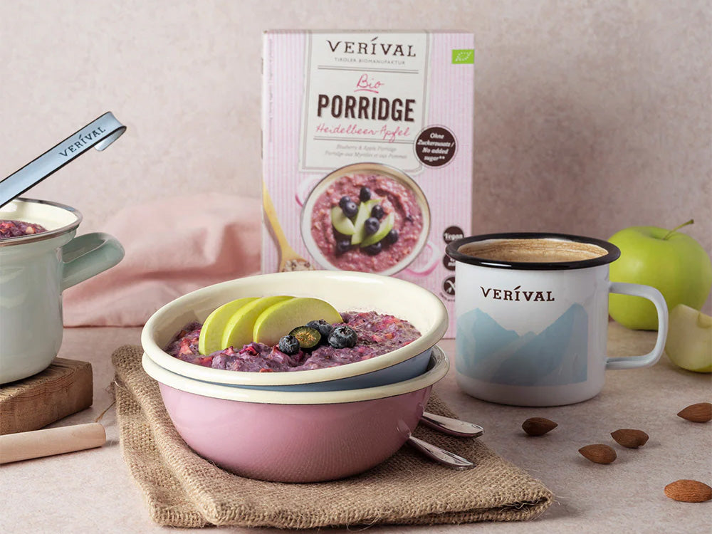 A healthy breakfast is the perfect start to your day! As a manufacturer of organic breakfast products, we at Verival have made it our goal to help you start every day with the right breakfast. We have a wide selection for you, because we don't want you to get bored at the breakfast table, which is why we supply our porridge, muesli and granola in numerous flavours. For the creative among you: Have you already browsed through the many flakes, cereals and toppings (chia seeds, berries, etc.) for a completely personalised breakfast experience? All our breakfast products are carefully produced in Tyrol - 100% organic quality and natural enjoyment. Discover your favourite breakfast products now.