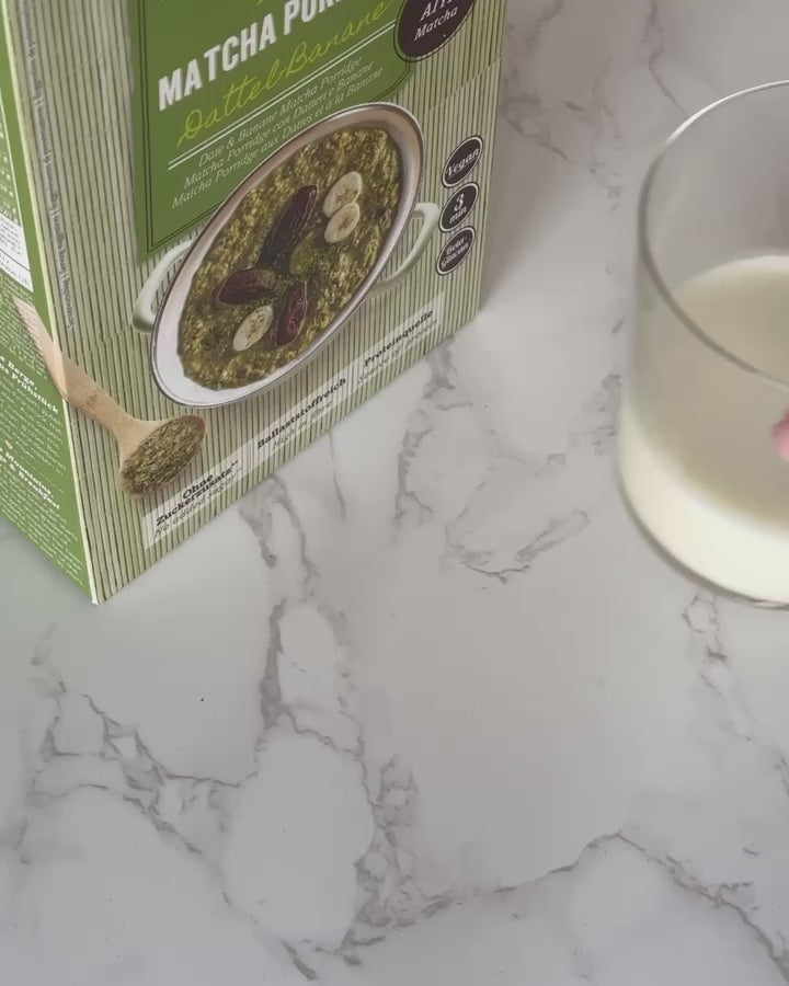 By combining porridge and matcha, the ingredients can be better absorbed by the body. Matcha has the highest known level of cell-protecting antioxidants in a natural product. In addition, the caffeine it contains provides a gentle energy boost and the high L-theanine content helps to relax and reduce stress. A perfect balance of revitalisation and relaxation. Incidentally, our porridge can be prepared in just 3 minutes, without any cooking.